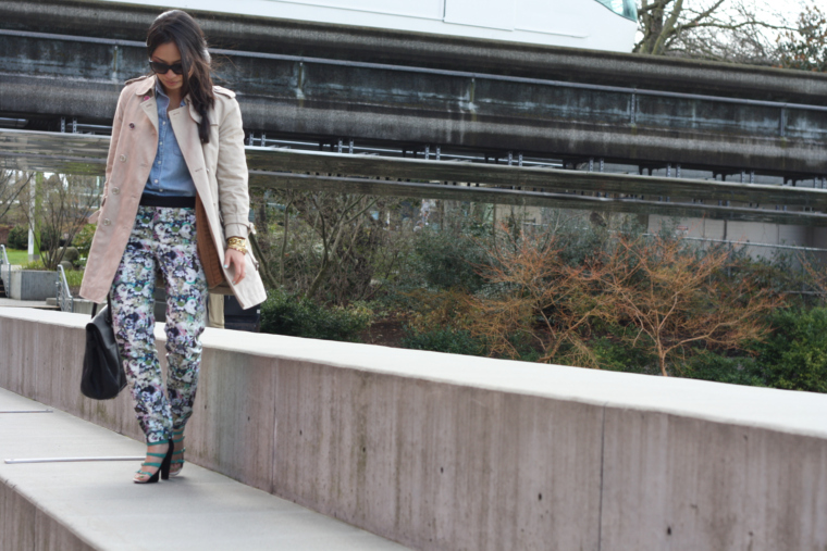 Chambray Shirt: J. Crew (similar Old Navy one here) / Pants: Zara / Trench: Coach (last seen here) / Shoes: Zara / Bag: Mulberry / Bracelets: Macy's (similar here) / Watch: Michael Kors / Shades: D&G / Nails: Essie - Absolutely Shore