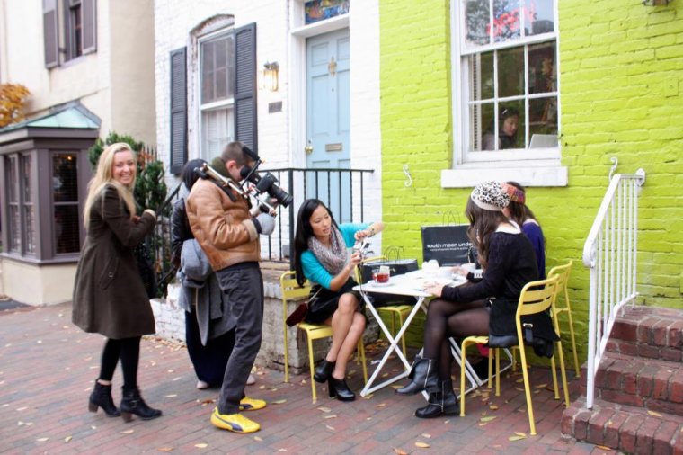 | Taking a little coffee break with my friends from Fashionably Broke. Katya from Spicy Candy DC sneaking a peek of us. |