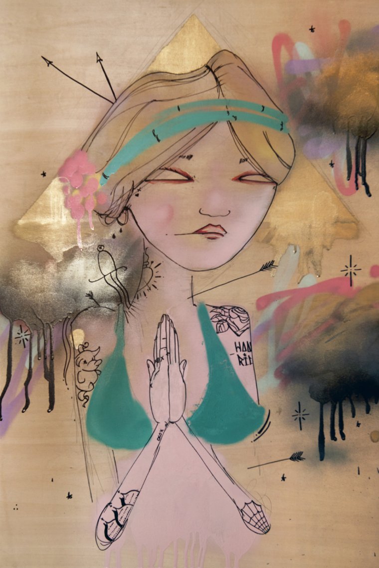 I discovered Kelly's amazing, animated art earlier this year at the Water Street Project and then had the opportunity to meet him and see more of his art at Kushi. I love how he mixes defined and colorful characters with street art spray paint strokes. I'm very drawn to each character. They're so cool. I want to meet them in real life and know more about them.