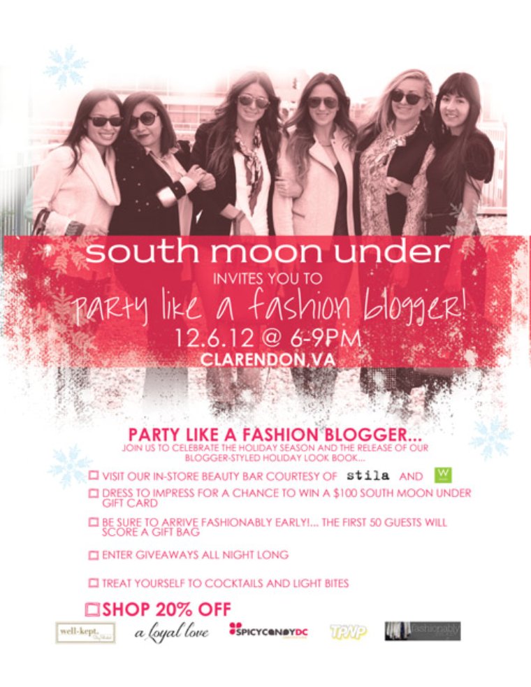 Join us at South Moon Under in Clarendon on Thursday, December 6 from 6-9 PM for complimentary drinks, light bites, giveaways, and shopping at 20% off! Arrive early! The first 50 guest will treated with a gift bag! RSVP here!