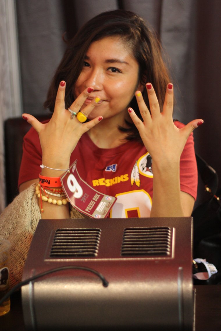 The lounge also featured a DJ, complimentary Burgundy and Gold Redskins manicures, a photo booth and professional stylists. Carlis from Spicy Candy DC shows off her chic nails.