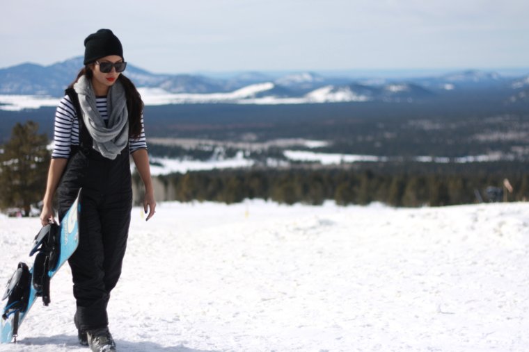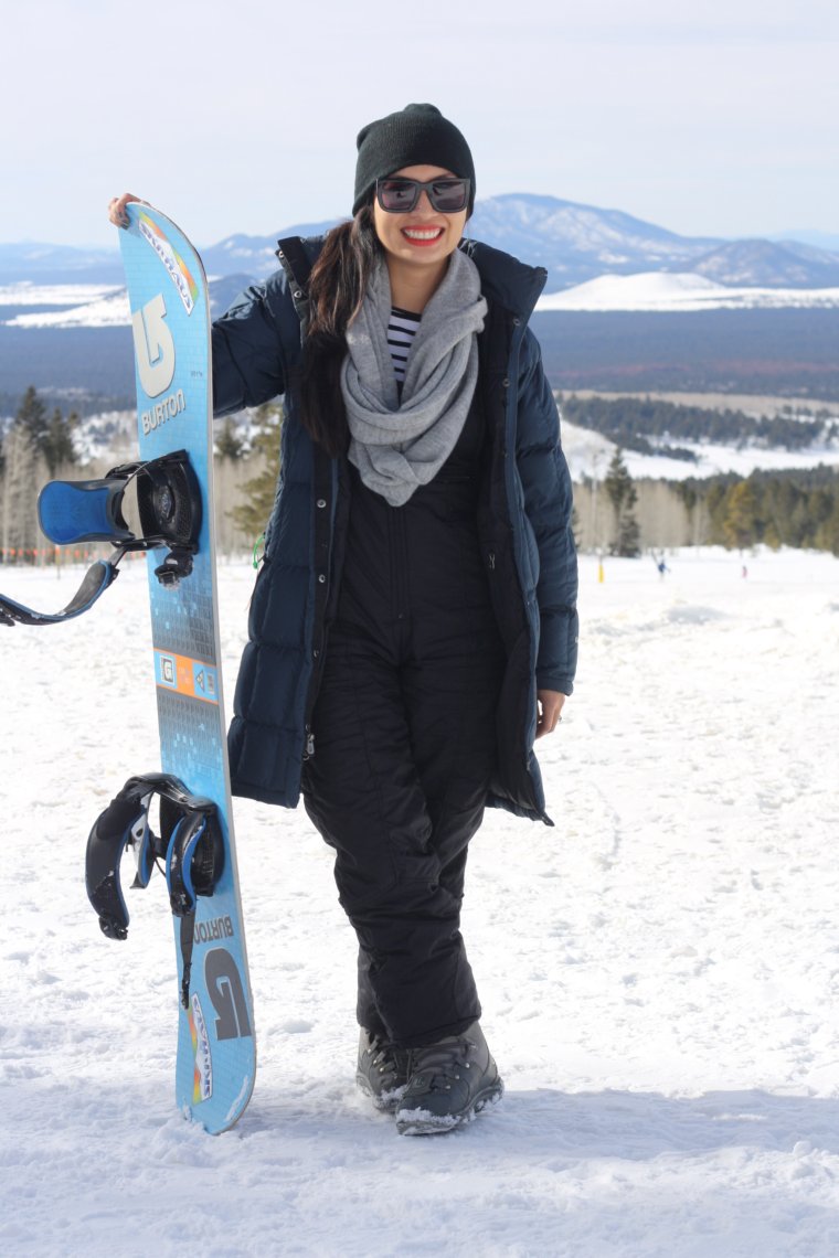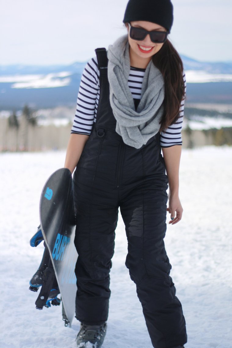 Top: Zara (similar) / Ski Bib: old (similar) / Scarf: DeNada / Snowboard & Boots: Rented from Ski Haus / Parka: North Face / Beanie: DC street vendor / Sunglasses: Karen Walker