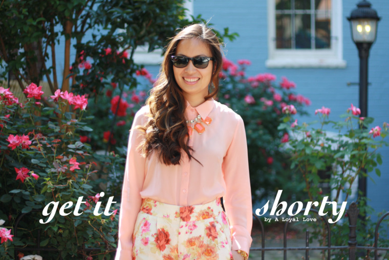 I'm a big fan of shorts. (Remember these?) Paired with the right heels, shorts can ironically make a petite girl appear (or at least feel) just a little bit longer. I like to dress up my shorts with light blouses and bright jewelry - a very J.Crew inspired look.