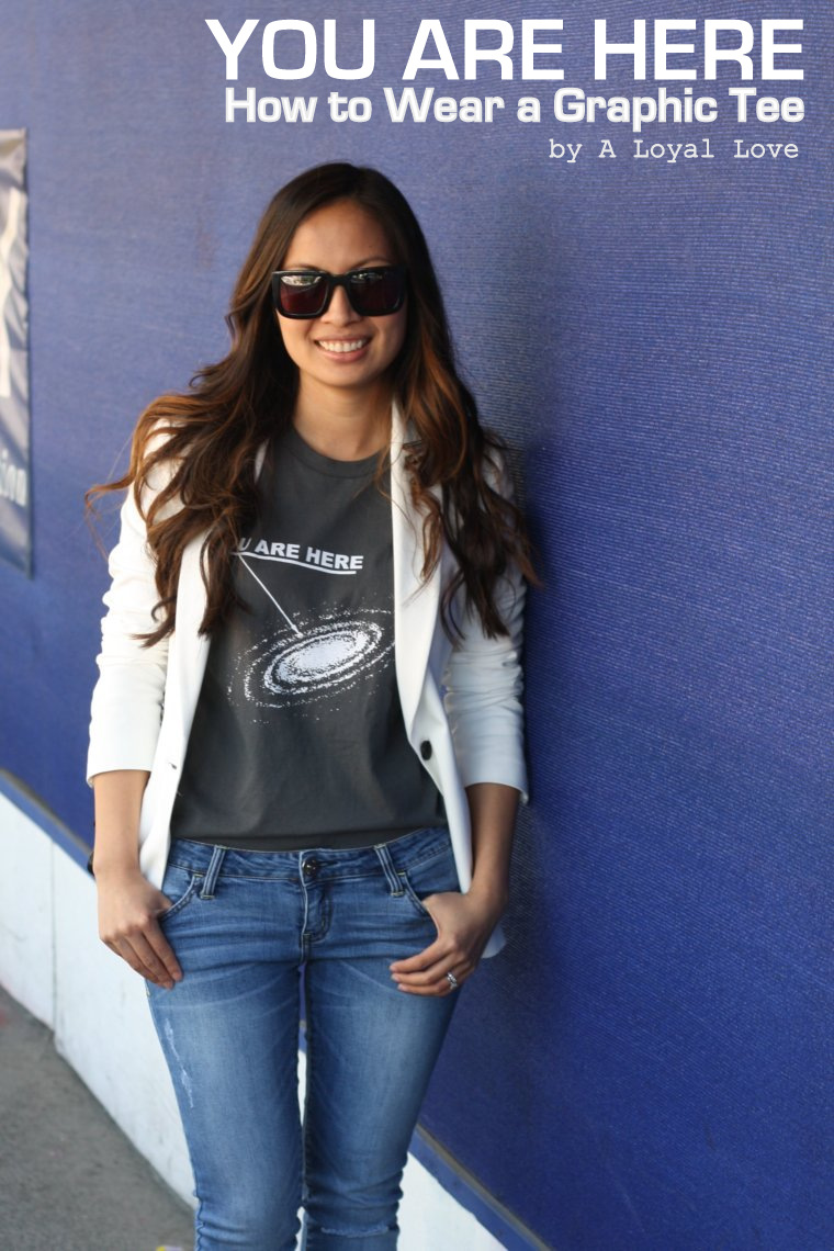 For the past few years I've avoided wearing t-shirts (note: I don't put baseball tees in the t-shirt category - see here, here, & here). In my mind, there was something juvenile/sloppy/grungy about them. I wouldn't even wear them to the gym (instead I wear these). Then suddenly, in the past couple of months, all I want to wear is t-shirts. I found that if I paired them with structured clothing like a blazer or a well tailored skirt, the outcome is something quite chic and extremely comfortable. The other important piece is the material - the softer and more vintage feeling the better. I'm especially loving graphic tees. They are a fun way express who you are or how you're feeling without verbally saying anything.