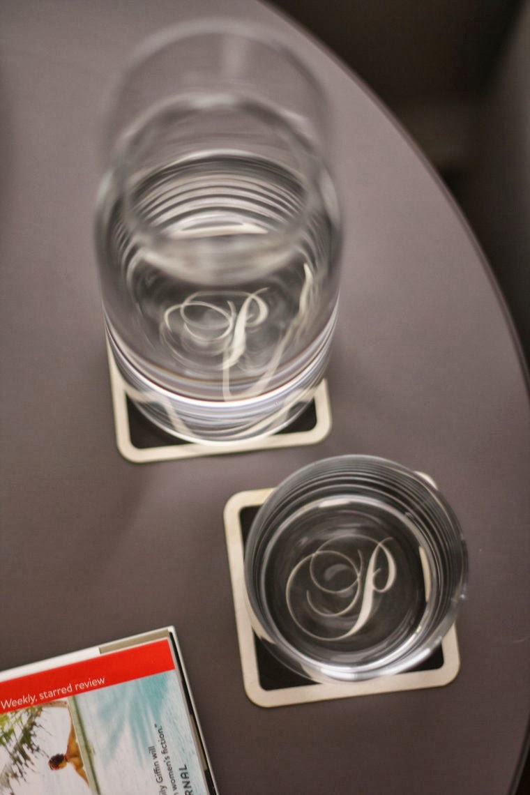 The monogram coasters are a souvenir from a hotel my husband and I stayed at in San Francisco.