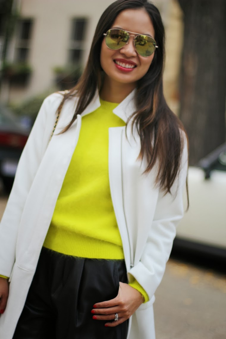 I've been favoring black and white a lot lately so I decided to add a pop of neon to what would have been another dichromatic outfit. I love how much it brightens the whole look.