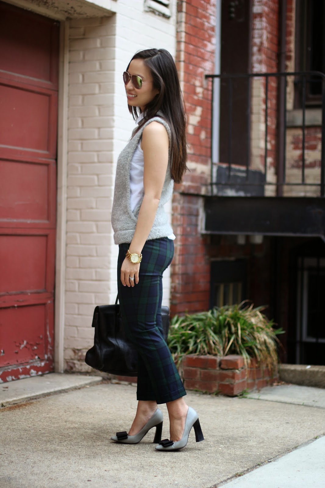 H&M; BUTTON DOWN SHIRT & VEST, c/o ZARA PANTS