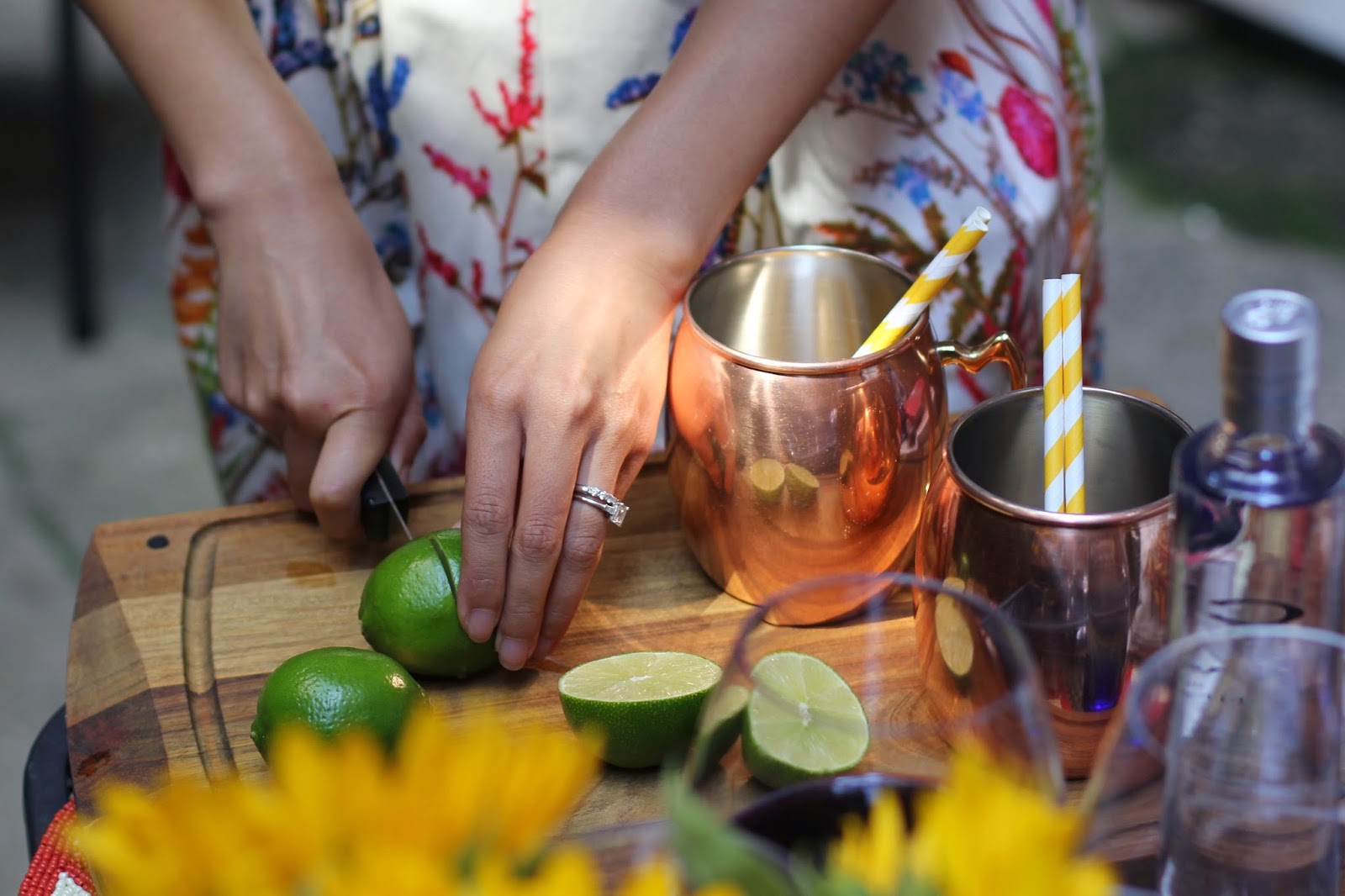 Cheers to summer weather! With warm weather comes the chance to throw a party - and even better, a party outside! Thanks to Marshalls I was fully equipped to put together a fun, outdoor Happy Hour with friends. Our Happy Hour menu featured 3 drinks: Moscow Mules, Strawberry Green Iced Teas, and wine. Continue reading for drink recipes.
