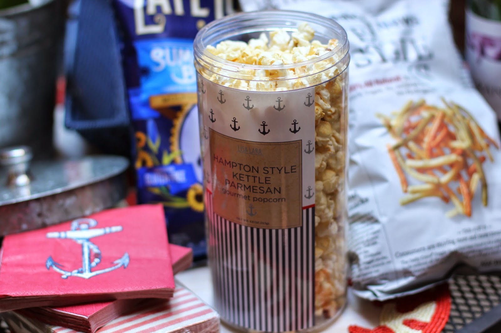 HAMPTON STYLE POPCORN VIA MARSHALLS $6.99 COMPARE AT $9 c/o, NAUTICAL THEMED NAPKINS VIA MARSHALLS c/o