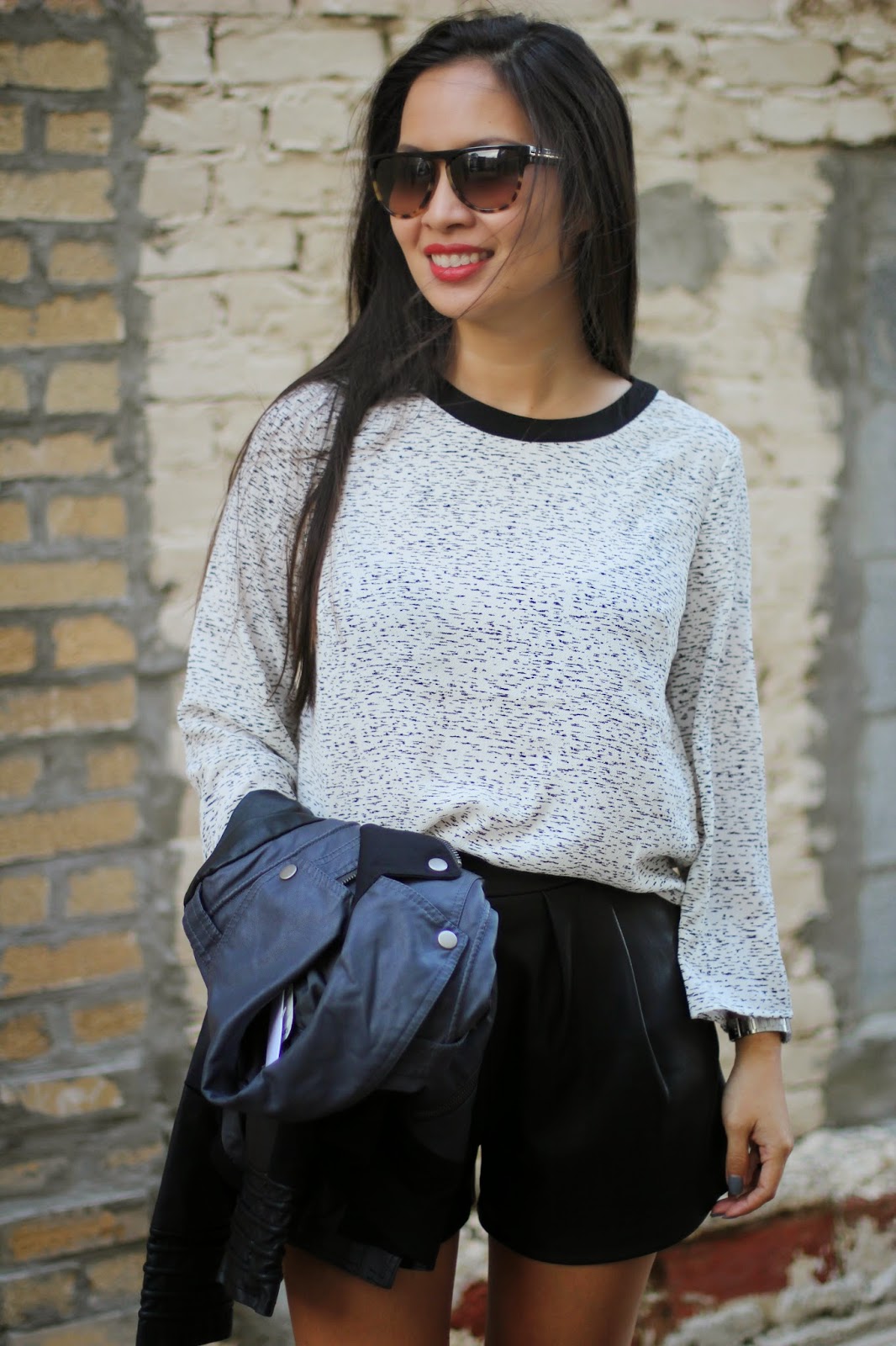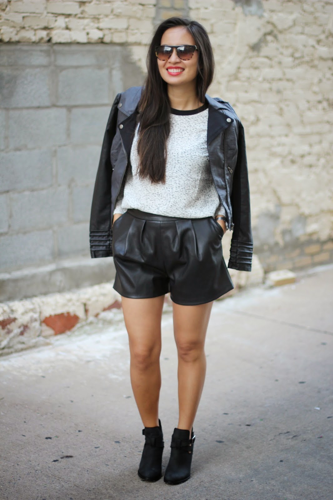 We had a beautiful, sunny, and breezy Sunday in DC with temperatures dropping to the 70s. Luckily, my friends at Marshalls sent me a box of full of fashion goodies to get me started on the right Fall foot - Christian Di Riccio booties (similar), a Vero Moda moto jacket (similar), and a Rose & Olive long-sleeve top (similar). I paired these pieces with leather shorts from Zara (yes, it's still warm enough). If you're petite like me, then I find it's best to wear booties with either something short or something long. Anything in between cuts off my legs and makes me look even shorter. Also, this blouse is light enough to layer a leather jacket over and is the perfect printed break to leather on leather on leather. To add little color, I finished off the look with red lipstick from Nars.