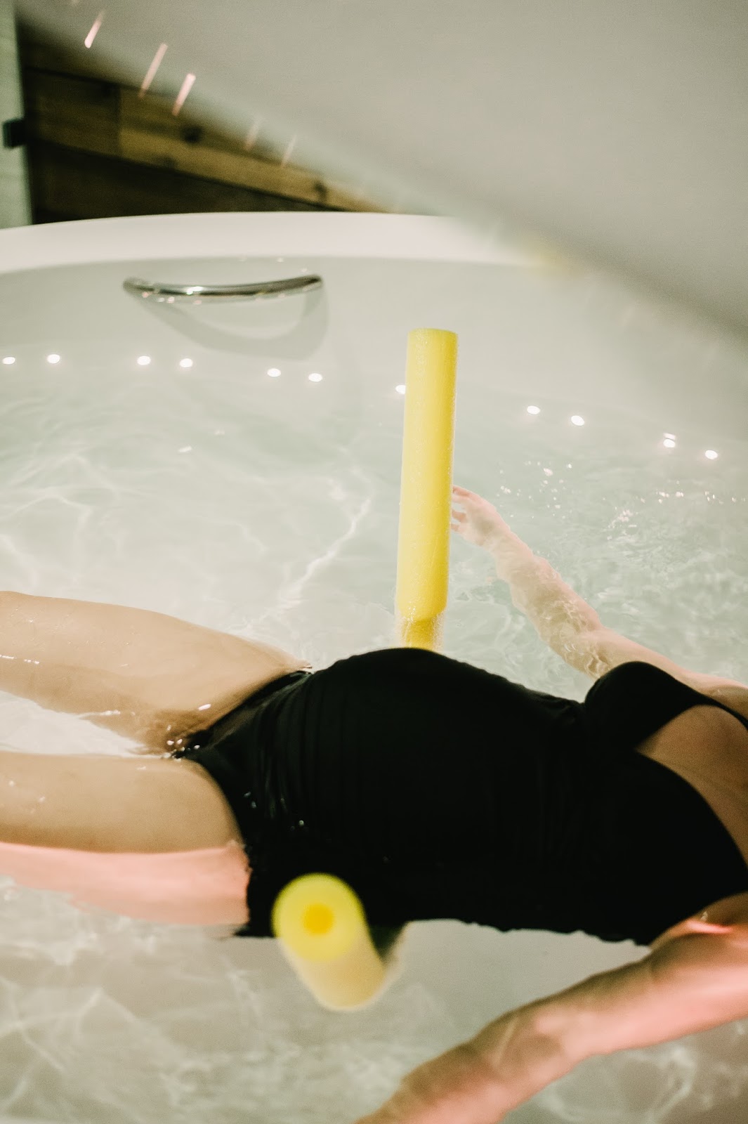 Floating forces me to truly disconnect from everything and fully relax. When I soak at home, I'm on a device the entire time - watching Instagram Stories or a show on my iPad. Allowing my mind to be unstimulated by a device and focusing on my breathing for an entire hour is incredibly restorative. Additionally, it's a fun and unique bonding experience with my baby as floating in the pod is very womb-like, and for that hour I'm free of any added strain or pressure on my body. I especially love getting a good workout in prior to floating and then letting the float relax my muscles.